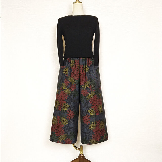 大島紬のリメイクガウチョパンツです。