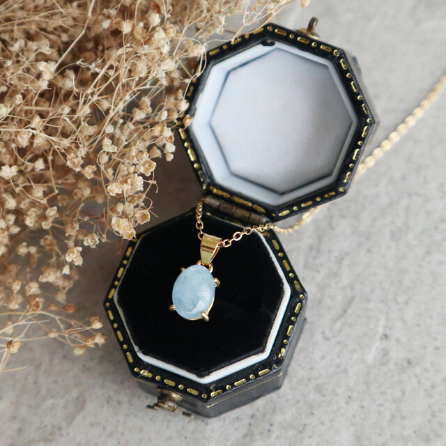 #アクアマリン#ナミビア産#3月誕生石#天然石ネックレス#オーバルネックレス#ミルキーブルー#サージカルステンレス#金属アレルギー対応#誕生日プレゼント#大人上品