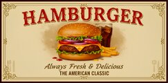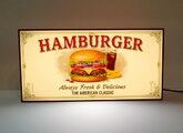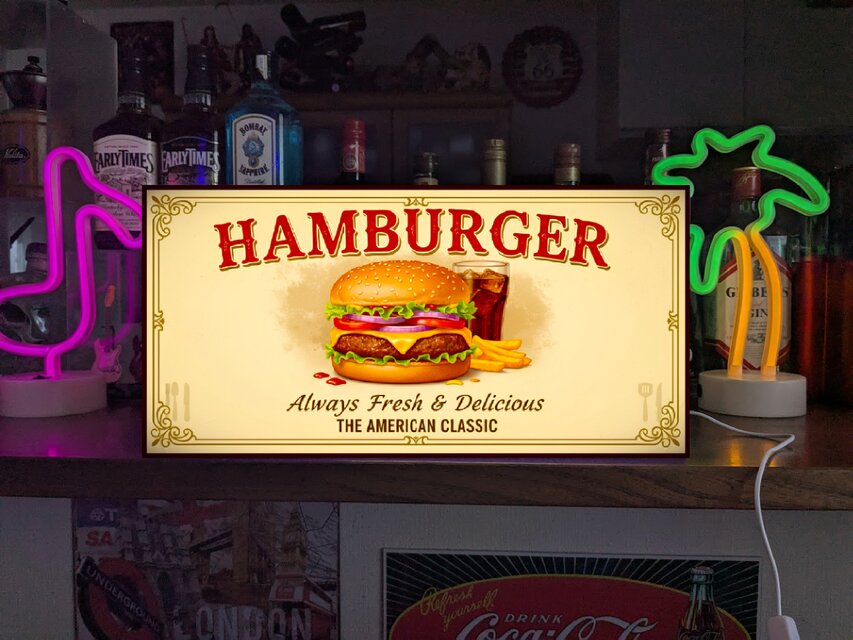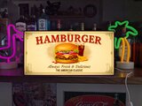 レトロなアメリカンスタイルの光るハンバーガーサイン看板。