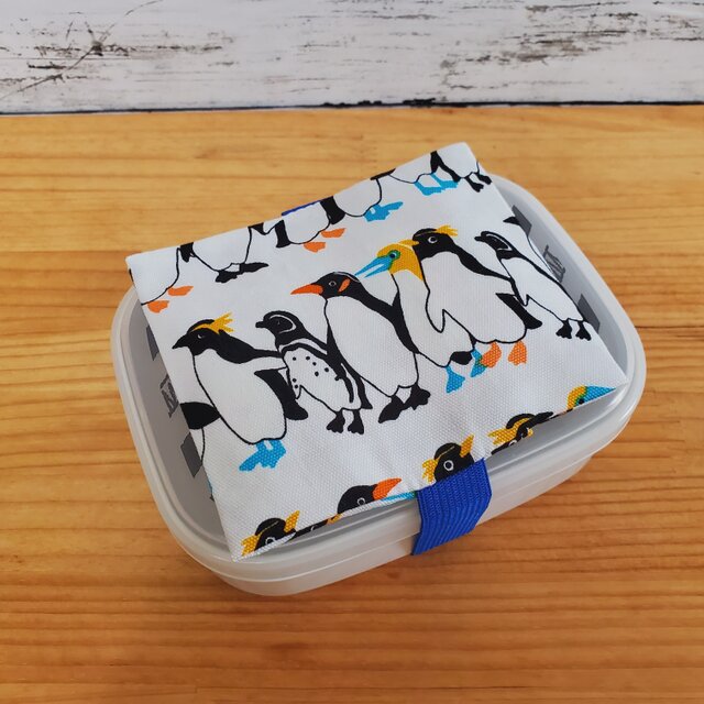 ペンギン柄のお弁当箱の保冷剤ケース付きランチベルトです。