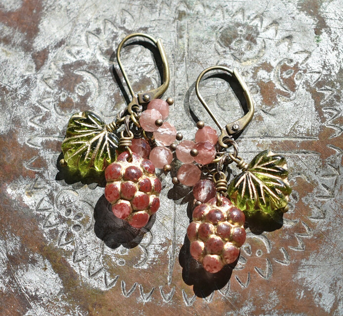 葡萄&葉っぱチェコビーズとアンデシンのピアス