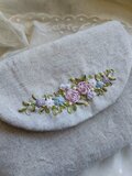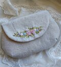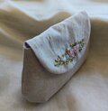 ナチュラルリネンにリボン刺繍、フランス刺繍、を施し、パールビーズで上品な輝きを添えたポーチです。