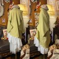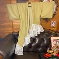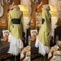【単衣 着物 2way アシンメトリー ガウン 羽織り ドレス ワンピース ハンドメイド 和洋折衷 洗える 化繊 リメイク 名古屋帯サッシュベルト レトロ 古着 若草の静寂 × 繊細レースの透過 KD-101】
