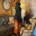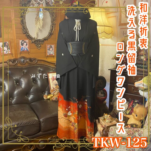 【 黒留袖 着物 リメイク ロングワンピース ドレス 和洋折衷 洗える 化繊 ハンドメイド レトロ 古着 漆黒の品格 × 慶びの吉祥文様 TKW-125】
