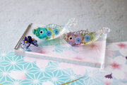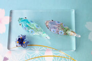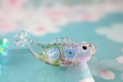 ガラスで制作した小さな鯉のぼりと花しょうぶです。