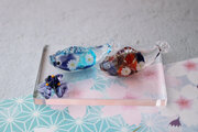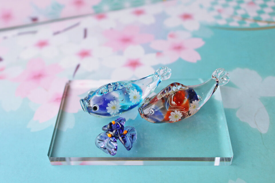 ガラスで制作した小さな鯉のぼりと花しょうぶです。