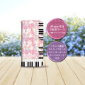 桜とピアノ(縦の鍵盤には桜模様をあしらいました)&音符がおりなすはんなり優しいデザインのiPhone専用 手帳型スマホケース【内側色:ホワイト仕様】です。