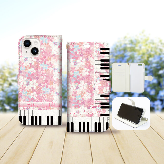 iPhoneケース iPhoneカバー 手帳型スマホケース スマホケース プレゼント ギフト 桜 さくら 花柄 ピアノ 鍵盤 音楽 音符