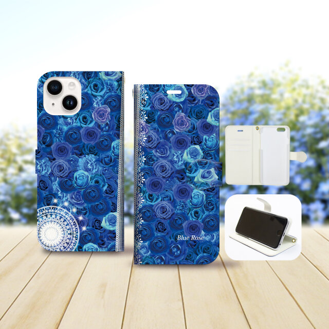 iPhoneケース iPhoneカバー 手帳型スマホケース スマホケース プレゼント ギフト 薔薇 ばら バラ ブルーローズ 花 花柄 青いバラ