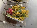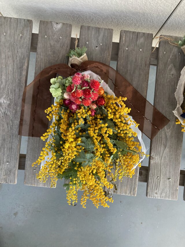 ドライユーカリとポンポンミモザを束ねました。