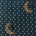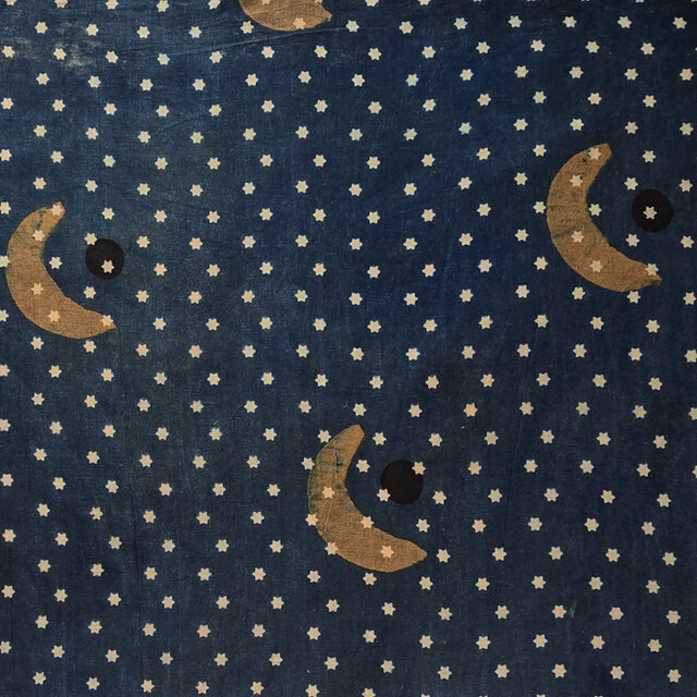全体を藍染し、ドットが白抜きでさらにからし色で月が描かれています。