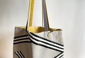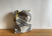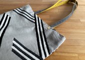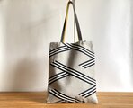 ラインの部分は刺繍になっています。インパクトのあるファブリックのモダンなお出かけバッグです。