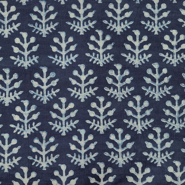インド ブロックプリント生地[50cm単位]アコラ インディゴ ブルー ジャングルプラント 藍染 IF0472