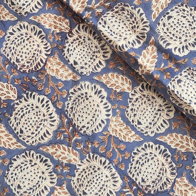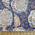 インド ブロックプリント生地 [50cm単位切り売り]サンガネリ ビッグフラワー on ブルー ベリー色 IF0477