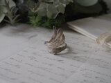 マットなシルバーでてきたその羽には繊細な彫刻が施され