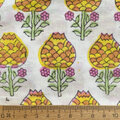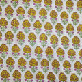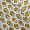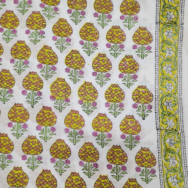 インド ブロックプリント生地 [50cm単位切売] サンガネリ マムフラワー イエロー ボーダー 花 SA IF0466