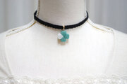 【受注製作】レジンアート クローバーモチーフとタティングレースとベルベットリボンのチョーカー〈未来の夢〉