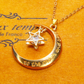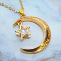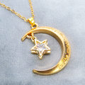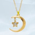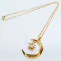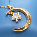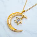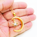 マットゴールド 三日月と星フレームのキュービックジルコニアをつり下げたペンダント・ネックレス 長さ調整可