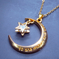 柔らかな輝きを放つマットゴールドの三日月をベースに、夜空に瞬く星フレームのキュービックジルコニアを組み合わせたペンダントです