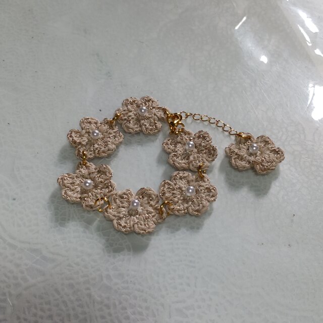 お花モチーフパールビーズブレスレット