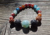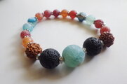ハワイの海を思わせる色のドゥルージーアゲートを真ん中にして溶岩石であるラヴァストーンや夕日色のドラゴンアゲートなどを組みあわせアロマ/ディフューザーブレスレットにしました