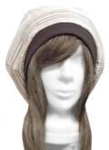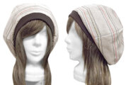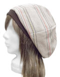 ゆったりルーズ・リブ付ベレー帽◆ボーダー柄ジャガード織コットンリネンニット/ベージュ系 ◇オールシーズン着用・小顔効果◇