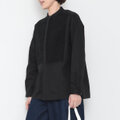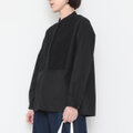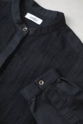 襟元はすっきりとしたバンドカラー。