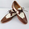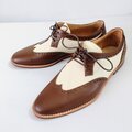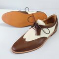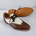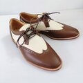 本革ブラウンレザーでメダリオン装飾したオシャレな本革ウイングチップシューズを製作致しました。
