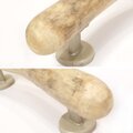 金具は シルバー系のプラスチックカバー付き丸足、金具同士の直線距離は 18.4cm、金具の足は 4cm ほどです。