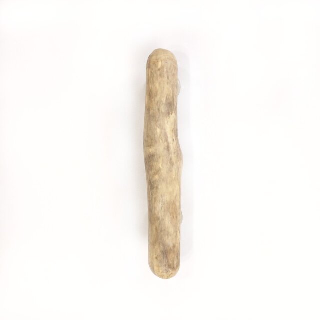 中央の木の節前後の直径は 4cm ほど、窪み穴のある先端にひび割れがございますが補修済、しっかりした流木です。