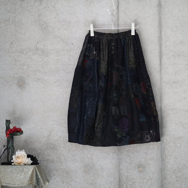 紬のぷっくらスカート パッチワーク フリーサイズ 着物リメイク