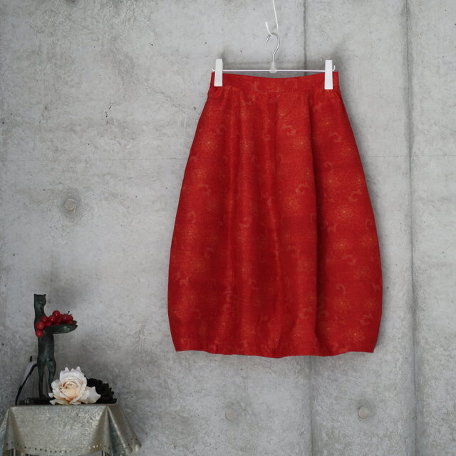 紬のぷっくらスカート フリーサイズ 着物リメイク