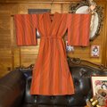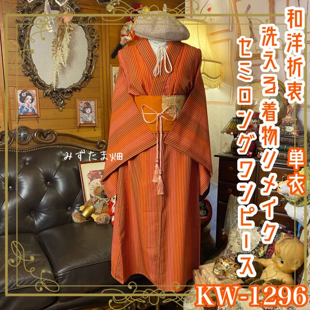 【 単衣着物リメイク セミロング ワンピース/ドレス/洗える化繊 帯サッシュベルト 曙のストライプ KW-1296】