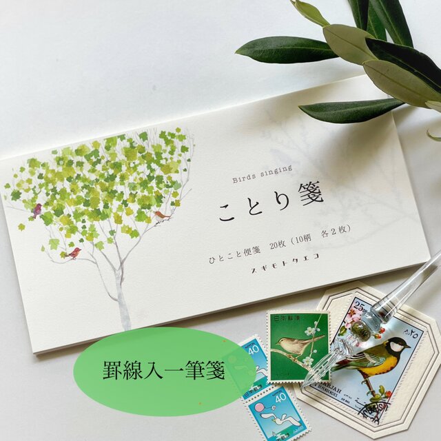 ⚫︎ひとこと便箋 20枚 (10柄 各2枚 サイズ 95×190ミリ)
