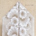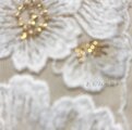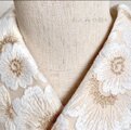 優しい印象の白と金糸で刺繍されたお花が