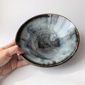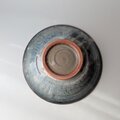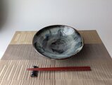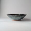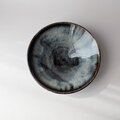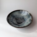 深みのある青灰色と、縁にかけて広がる黒釉のコントラストが印象的な中鉢です。