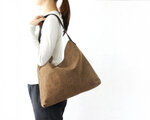 A4が入る 帆布×レザー ワンショルダーバッグ Nueng(ライトブラウン)ls005