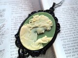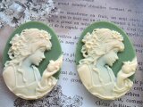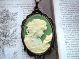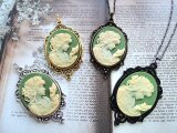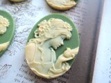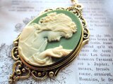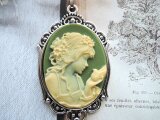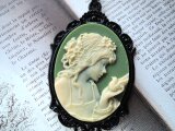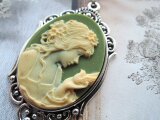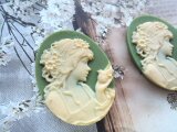 (1430)数量限定品素敵なカメオシリーズ✨ビクトリア朝ルサイトカメオレディー&バード✨オリーブグリーン×アイボリー。・。・