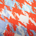 ガラ紡の素朴で味のある糸と染色性の良いスーピマ綿を染めた糸を交織して柄を織り出しています。しっかりとした密度で織っていますが硬くならずやわらかい仕上がりなのはこの素材と手織りならではのものです.