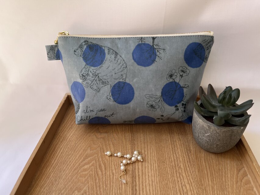 くまさんとドットの北欧風なラミネートポーチ
