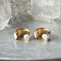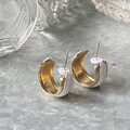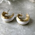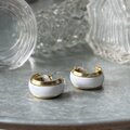 ゴールドトーンのプレートに、ホワイトエナメルペイントされたプレートが重なるフープデザイン。
