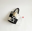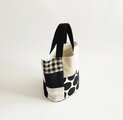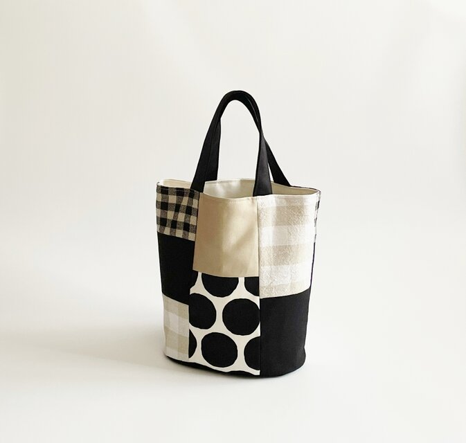 一点物|モノトーン×ドットチェック パッチワーク バケツ型バッグ|手提げ・楕円底
