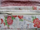 牡丹の花や菊の花、藤の花等の描かれた正絹の着物で作りました。