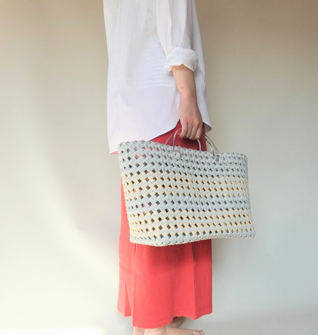 ✤アイスグレーのかごにクリアハンドル、とことん爽やかなカラーのバッグです。
