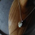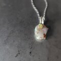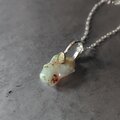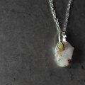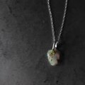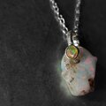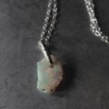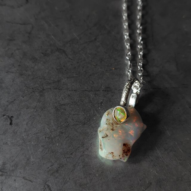 母岩を取り除いた自然の穴にローズカットのオパールを添えてボリュームのあるエチオピアオパール原石をシルバーネックレスに仕立てました。