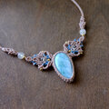 ラリマー(ドミニカ共和国産)・ムーンストーン(タンザニア産)マクラメ編みチョーカー ネックレス 母の日ギフトプレゼント 3495