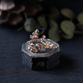 植物や鉱物など、金属ではないものの表面に電気メッキをかける技術。儚く枯れてしまう植物を金属に変えることでその時間と美しさを留めることができる、錬金術のような技法です。金属の層を厚くすることにより、強度も保たれます。