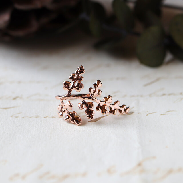 繊細な葉が相似形に並ぶ美しい造形をそのまま銅化し、植物標本のような静かな存在感と、金属ならではの強度を両立させました。