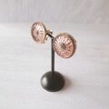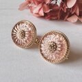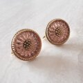 やわらかな光を含んだ、落ち着いた色合いのヴィンテージピンクのチェコガラスボタンを使ったピアス/イヤリングです。