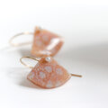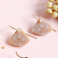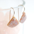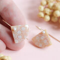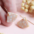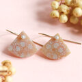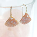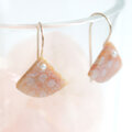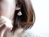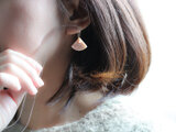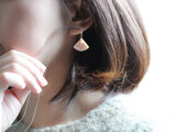 小さな扇形のフォルムが耳元でやさしく揺れ、小さな一粒のパールとあいまって、上品でやさしい印象に仕上がっています。